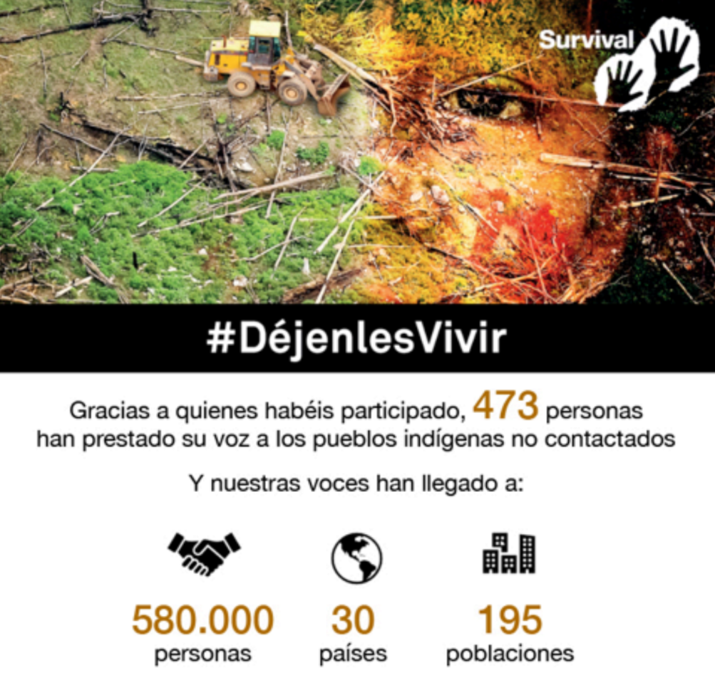 Campaign carried out as Survival International's dissemination manager for Latin America and Spain. We reached a reach of 580K people, reaching 30 countries and 195 populations. 59K visits on Facebook, 2.34M impressions of the hashtag on Twitter, 701 tweets by 493 people (only in one month), more than 10K visits to the campaign website in two weeks, 2.4K impressions on Adwords, almost 200 downloads for WhatsApp, 5K email opens, 13.3% response rate from supporters, banner publication and projection at 6 film festivals. Media coverage of EFE, Europa Press, Mapuexpress, El Periódico, La Vanguardia. Last Hour, etc; interviews at RNE; El Correo del Sol, Ethic, Ecoavant.